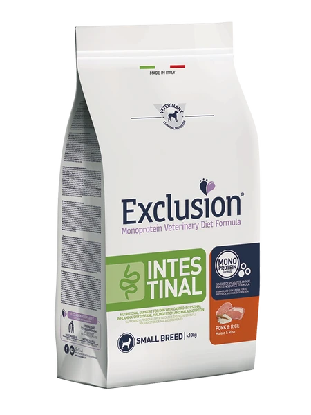 Exclusion Diet Intestinal All Breeds ist ein diätetisches Alleinfuttermittel für ausgewachsene Hunde zur Reduzierung akuter Resorptionsstörungen des Darms und zum Ausgleich von Verdauungsbeschwerden. Dieses Alleinfuttermittel hat einen erhöhten Elektrolytgehalt, hochverdauliche Inhaltsstoffe und einen niedrigen Fettgehalt.